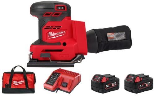 Obseg dobave: V kartonu M18 BQSS z 2x 5Ah akumulatorjema in polnilnikom, vrečka za prah, luknjač, rezervna gladka podlaga, brusni listi