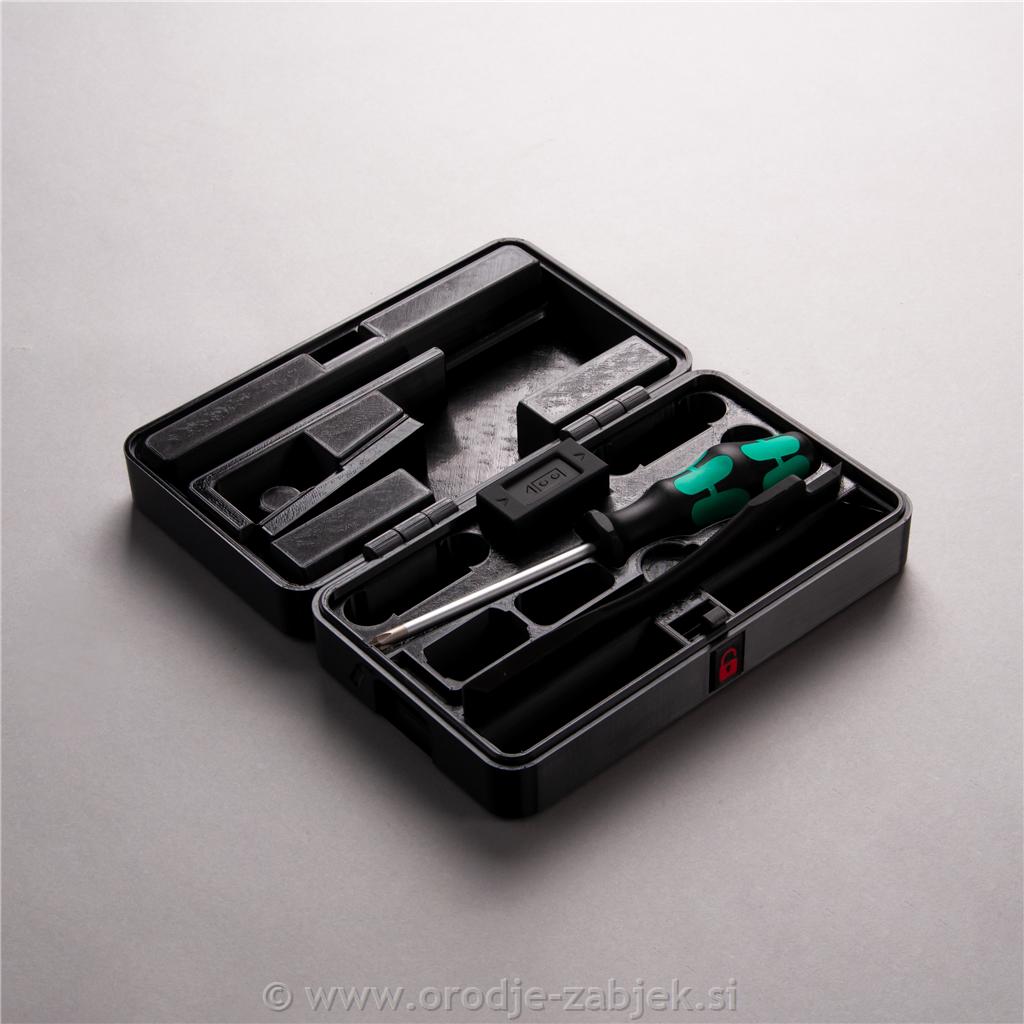 vzdrževalno strgalo, podajalnik rezil, Wera izvijač in imbus ključ. Zasnovana za garažo ali